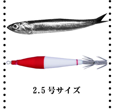 関東関西で、ケンサキイカを狙う場合、2.5号が使われることが多いのは、 平均サイズにもよるが、小型の小魚の群れを追うためだと考えられる。 このため、2.5号~3.0号を好んで使うイカ釣り師が非常に多い。 ただ、2.5号というサイズのスッテで最も問題なのが、 その体積ゆえに浮力が小さいことである。 『ケンサキSP』では、 硬質発泡ウレタン素材を利用することで、その弱点を克服することに成功しており、 小型の2.5号サイズでありながら、高浮力を実現することができている。