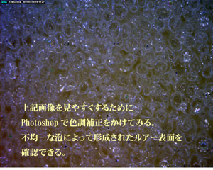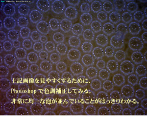 上記の画像を見やすくするために、色調補正した画像 気泡が小粒で非常に不均一なのが、はっきりと確認できる。