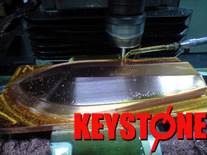 全てが純国産(日本製)の金型加工技術とプラスチック成型技術。 ベテランの地元漁師は言う。 「漁師人生で納得の出来るフリ(泳ぎ)の潜水板に何枚くらい出会えるだろうか?」 キーストンが生産する潜水板は、100枚中100枚がベストのフリ(泳ぎ)を実現します。 現実、泳ぎにバラツキのない潜水板を成型することは、これまで非常に困難でした。 キーストンでは、長年、硬質発泡ウレタン樹脂の成型方法に関する技術的ノウハウを 構築しており、いま理想に近づいた潜水板の成型が可能となっています。 右の写真は、潜水板の電極を成型しているところを撮影したものです。 最先端のITテクノロジーを利用し、高精度の成型を可能にしています。