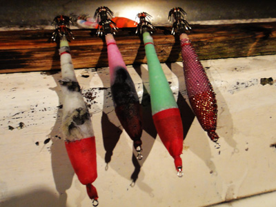 1999年以降の約20年以上の間、主に漁協向け(イカ釣り漁師向け)に、 高品質でバラツキのない『浮きスッテ(ウキスッテ)』を提供してきた。 地域により、好まれるサイズや下地ボディの色があり、全てのご要望にお応えできるよう、 サイズ展開と規格が非常に豊富であるのも特徴である。 サイズだけで7種。下地カラーが2色。布カラーが16色。 先進的な漁師の皆さんのスッテに求めるバランスは、 エサ巻きスッテ同様に、非常にこだわりが多く、 おかげさまで、この約20年の間で、 絶大の信頼を得ることが出来ている。